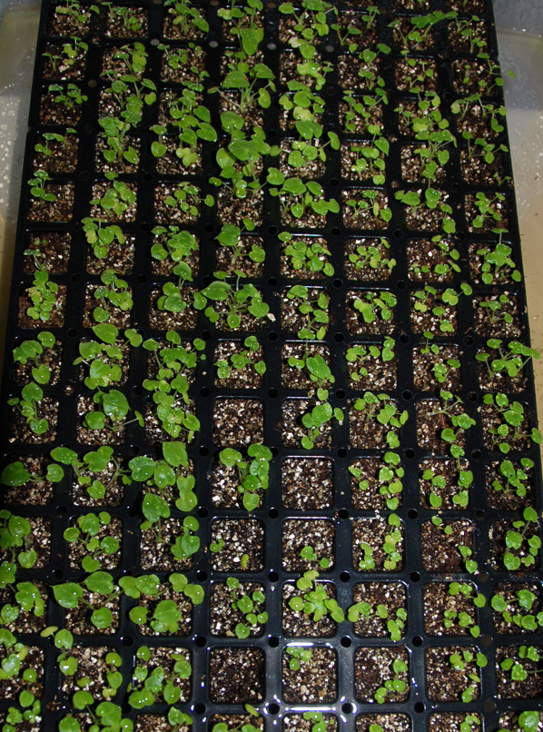 6.) The seedlings will need to be transplanted into larger 3-4" containers within a few months. You'll need to do this very carefully since the seedlings are very fragile at this point; they don't have much of a bulb at this point. I have found that by using a tray with a large hole in the bottom, I can poke a pencil through and push the plant out. Sometimes letting them dry out a little bit helps with this.