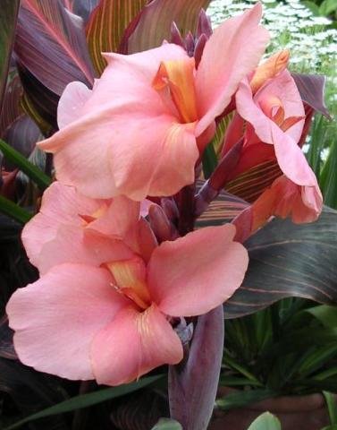 Canna (or Canna lily, although not a true lily) is a genus of nineteen (19) species of flowering plants. Canna lilies have leaves that fall into the large to huge range and flowers that follow suit.